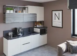 Наша продукция разрабатывается с учетом эргономики и удобства. Встроенные системы хранения, выдвижные ящики с доводчиками, скрытые полки и секции помогают максимально эффективно использовать пространство. Всё продумано до мелочей: от удобного доступа к посуде и технике до организации рабочих зон.